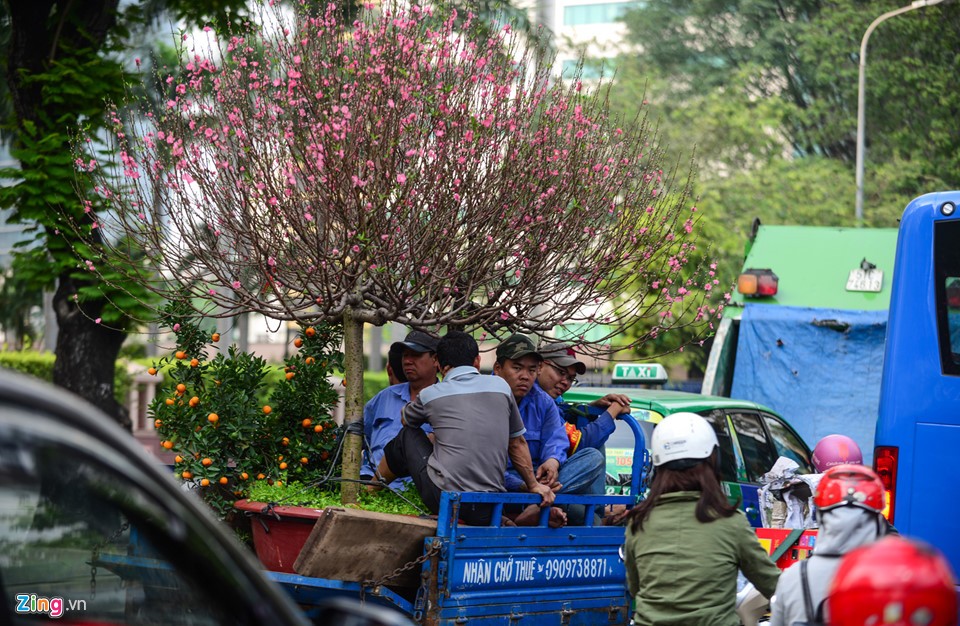 Cận kề Tết, trên đường phố nhiều phương tiện vận chuyển hoa cây cảnh lưu thông nhiều vào dịp cận Tết.
