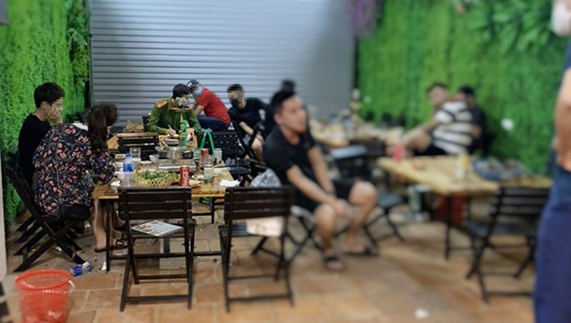 Thời điểm kiểm tra, lực lượng chức năng phát hiện tầng 1 căn nhà được khép cửa, tuy nhiên trên tầng 3 có một nhóm người đang ăn uống tại đây.