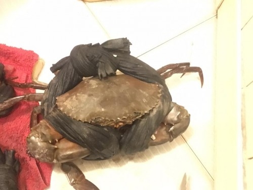 “Nhà mình đã phải trải qua câu chuyện bực mình như thế này lần đầu tiên vào 3 tháng trước. Gia đình đặt mua cua biển Cà Mau 5 kg thì mất khoảng hơn 2kg dây buộc. Lần này đặt mua 10 kg thì mất khoảng gần 6kg dây buộc bằng vải xốp ngâm bùn nhiều lớp”, anh C. cho biết.