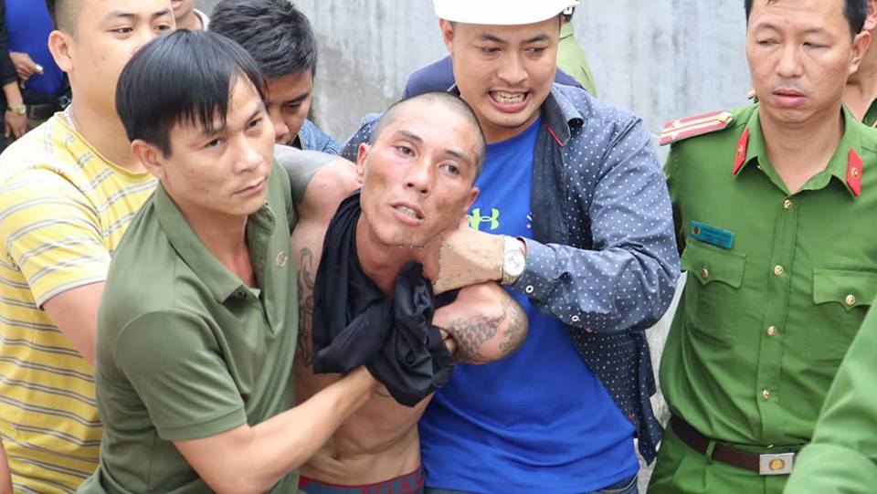Khi xuất hiện lực lượng chức năng, Hà vẫn tiếp tục bế con nhảy qua nhiều nóc nhà, đồng thời dọa thả cháu bé xuống đất.