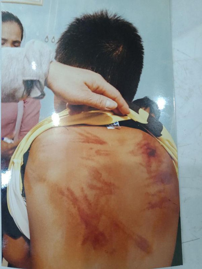 Khi đến đón K, bà H. hoảng hốt khi thấy khắp cơ thể con trai chi chít thương tích; từ đầu, mặt, lưng, tay, chân… có nhiều vết tím bầm, sưng phù. Bà H. trình báo sự việc đến công an địa phương và đưa con đến bệnh viện để điều trị. Theo kết quả chẩn đoán, em K. bị chấn thương phần mềm vùng đầu mặt, vùng lưng và mông.