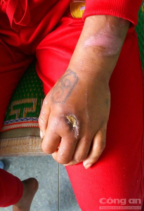 Vết thương trên tay Y Nhiêu. Ảnh: báo Công an.
