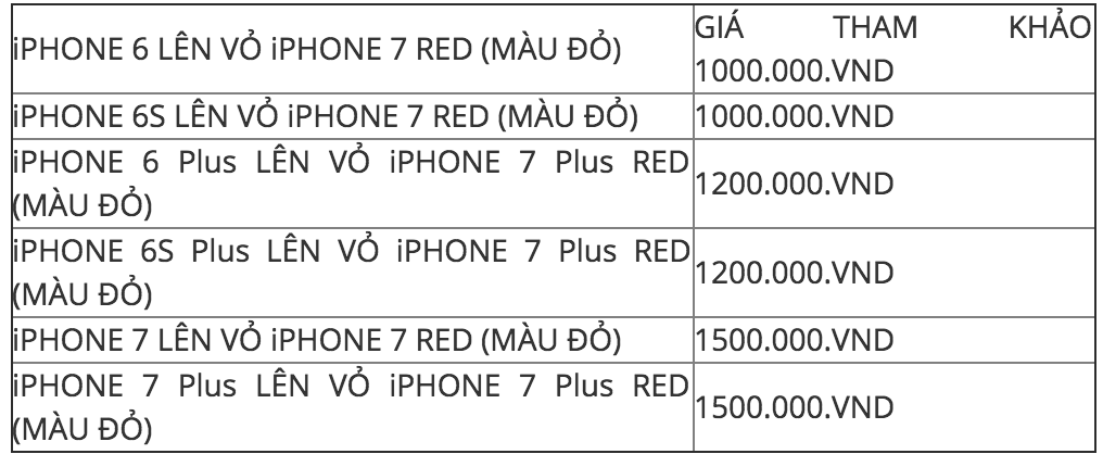 Ngay từ thời điểm này, tất cả các loại Iphone 6/6Plus/7/7Plus đã có thể khoác lên mình “chiếc áo đỏ” thời trang chỉ trong một nốt nhạc với giá chỉ bằng 1/20 chiếc điện thoại gốc.