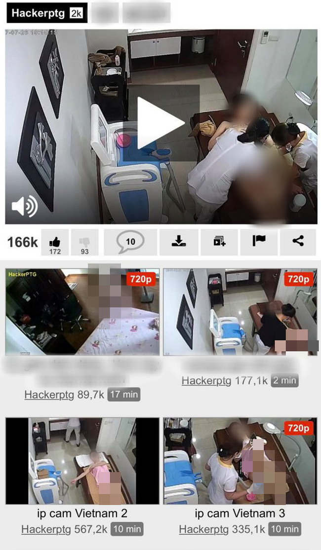 Liên quan đến vụ việc, trên 1 trang web đen, tài khoản “hackerptg” được cho là của nhóm hacker này đã đăng tải rất nhiều clip hack từ nhiều camera. Điều đáng nói, tất cả các clip này đều vô cùng nhạy cảm và nạn nhân đều là nữ giới. Các đoạn clip được lấy từ các tiệm spa, quán karaoke cho đến các hộ gia đình đều bị nhóm hacker này xâm nhập camera bất hợp pháp.