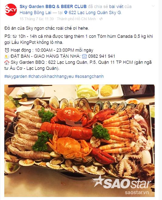 Dù mới mở cách đây 3 năm nhưng Sky Garden lại chiếm được rất nhiều sự tin cậy từ thực khách sành ăn Sài thành. Mới đây nhất, đua theo phong trào thưởng thức lẩu khủng, nhà hàng đưa ra nồi lẩu khổng lồ Kingpot với giá 2.800.000 ngàn đồng dành cho 6-8 người ăn.