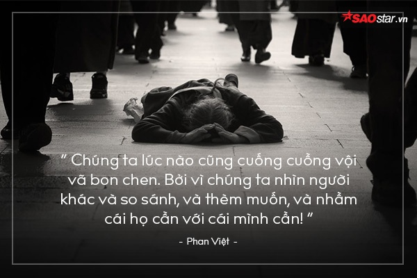 Chúng ta lúc nào cũng nhìn về phía người khác, và so sánh, và thèm muốn những thứ họ có. Bởi chúng ta nhầm cái họ cần với cái mình cần. “Đứng núi này trông núi nọ” đôi khi khiến ta không nhận ra giá trị hiện hữu ngay bên bạnh, để nó trôi đi một cách vô nghĩa.