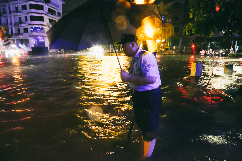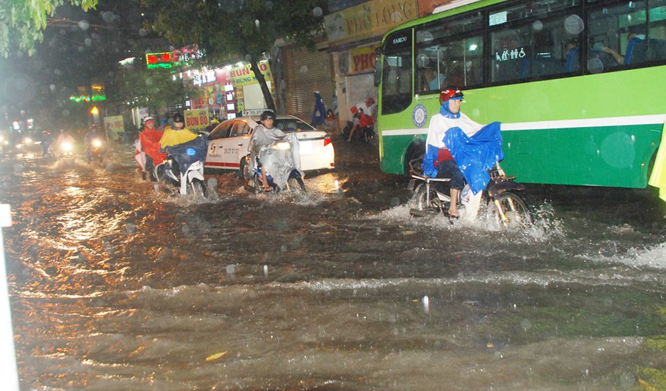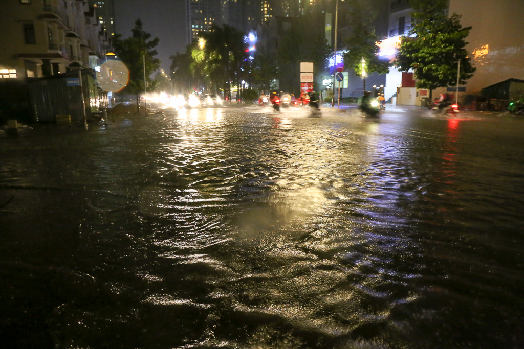 Đến 20h, mặc dù mưa đã ngớt nhưng cảnh tượng ngập lụt vẫn chưa có dấu hiệu giảm xuống.