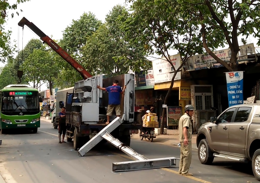 Vụ việc xảy ra vào khoảng 13h chiều 3/1 trên đường Trần Văn Giàu, quận Bình Tân, TP. HCM. Vào thời điểm trên, xe tải cẩu loại 2,7 tấn chở theo máy công nghiệp loại lớn chạy trên đường Trần Văn Giàu hướng từ TP. HCM đi Long An. Khi còn cách cầu Tân Tạo, quận Bình Tân khoảng 200 mét thì bất ngờ bị bung dây chằng hàng hóa, làm một khung sắt nặng cả trăm kg văng khỏi thùng xe tải và rơi xuống đường.