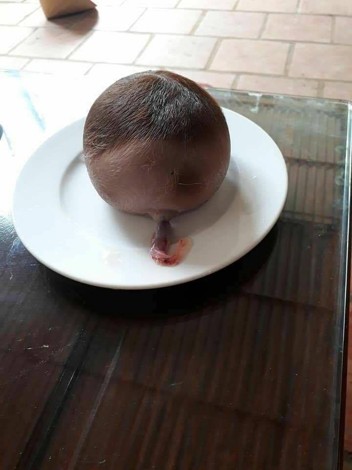 Sau đó tiếp tục đẻ ra “vật lạ” trông như đầu trẻ con.