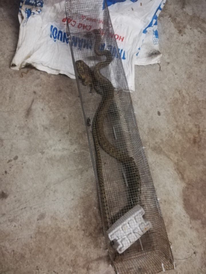 Trước sự việc trên, tổ trưởng dân phố ở khu vực này đã nhờ anh Nguyễn Khoa (bảo vệ tại khu chung cư) làm bẫy bắt rắn. Anh Khoa cho hay, từ hồi đầu năm đến nay anh đã bẫy được 5 con rắn hổ mang và 3 con rắn ráo. Con rắn hổ mang to nhất được hơn 1kg. Còn rắn ráo dài 2 sải tay, nặng khoảng 0,8kg.