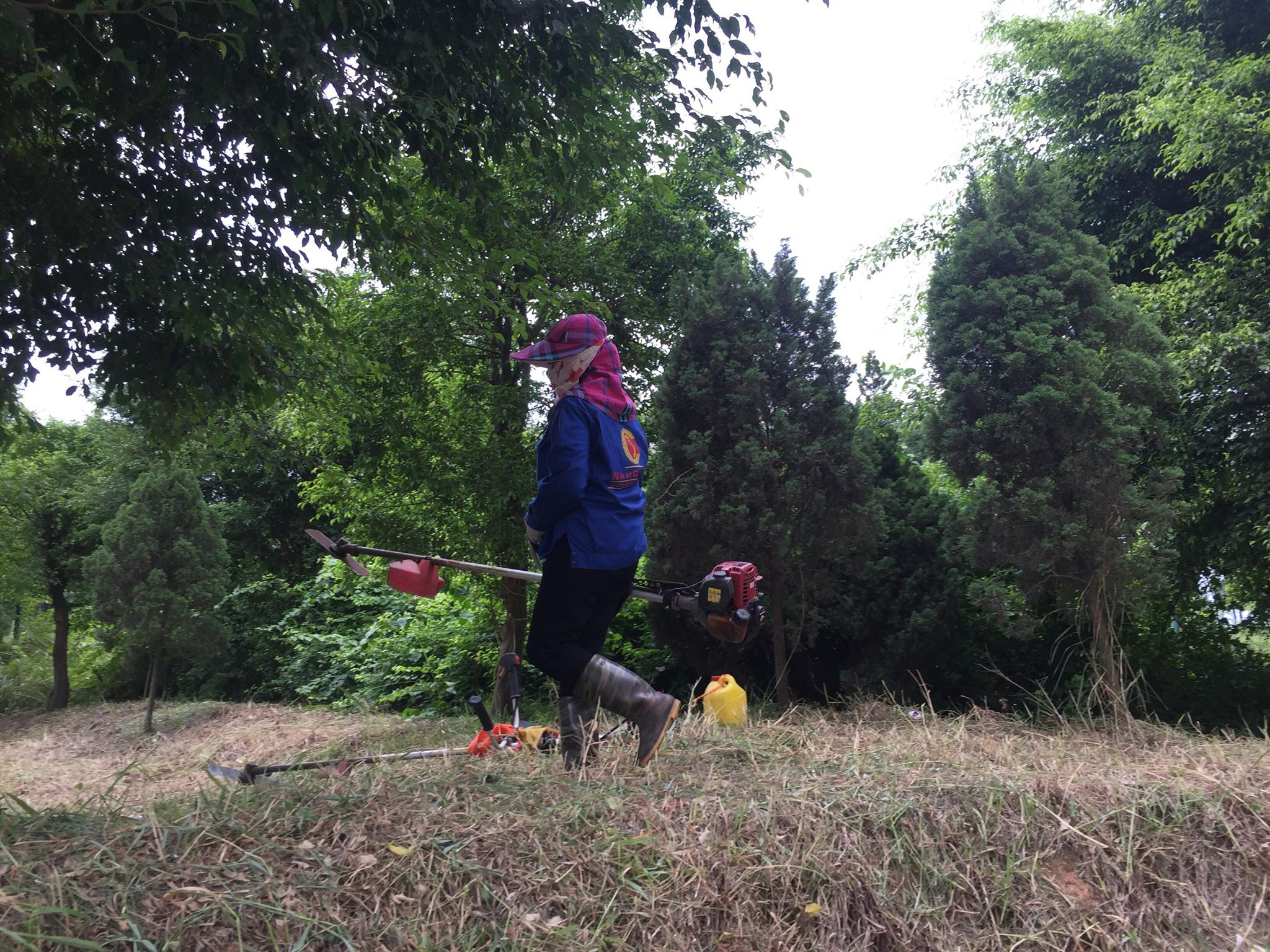 Gần vườn cỏ khu vui chơi được các công nhân dọn dẹp, phát quang.