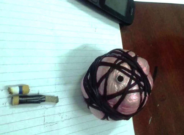 Anh Q. nhặt vật lạ lên thì thấy từ vật này thò ra một đoạn dây cháy chậm dài 3 cm đang cháy. Sau khi nhanh chóng dập tắt mồi lửa ở đầu dây, anh Q. mang vật lạ vào nhà thì kinh hãi nhận ra đây là một quả mìn tự chế nặng khoảng 0,2 kg.