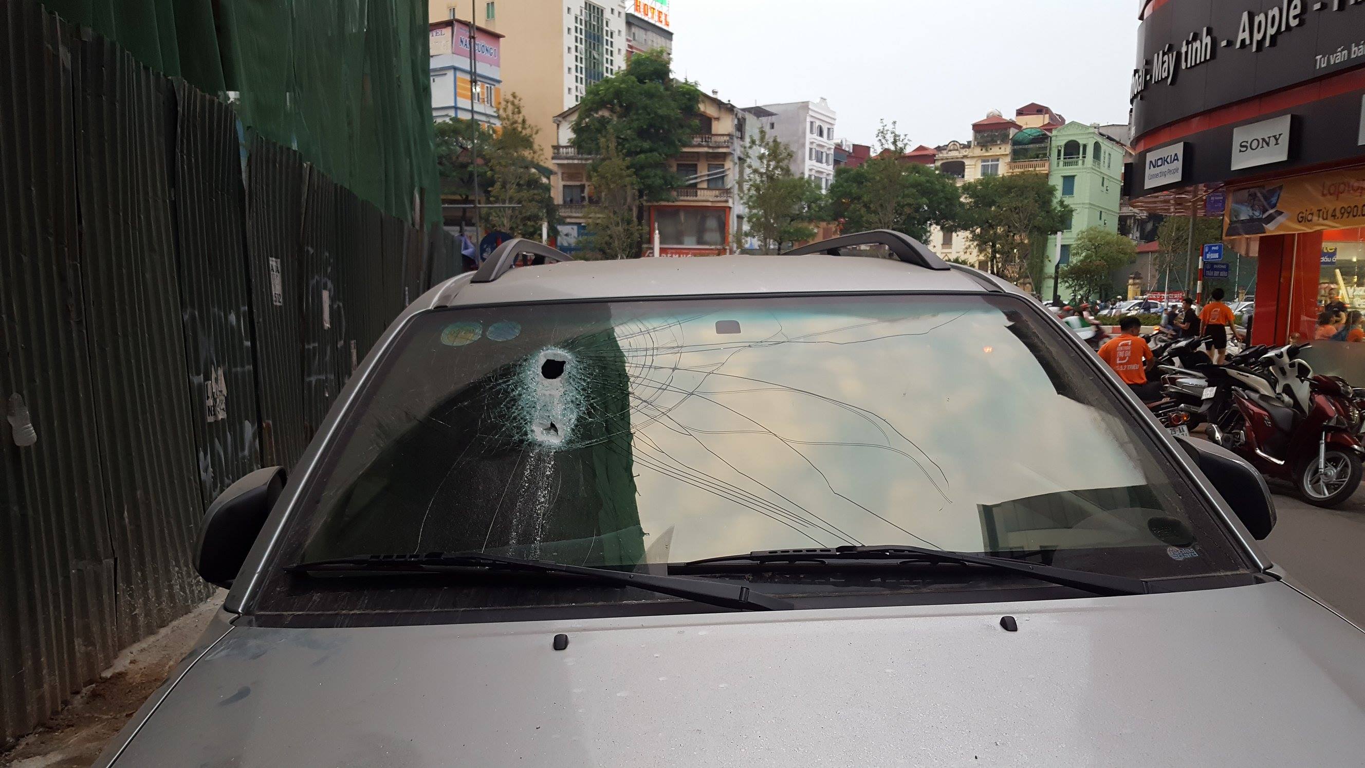 Hậu quả, xe ô tô 7 chỗ bị xuyên thủng kính phía trước bên ghế phụ. Rất may không có thương vong về người. Theo người dân cho biết, thời điểm xảy ra sự việc mọi người nghe tiếng động rất mạnh.