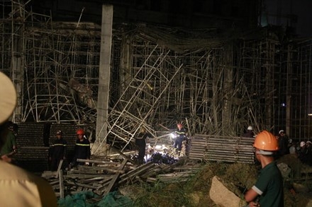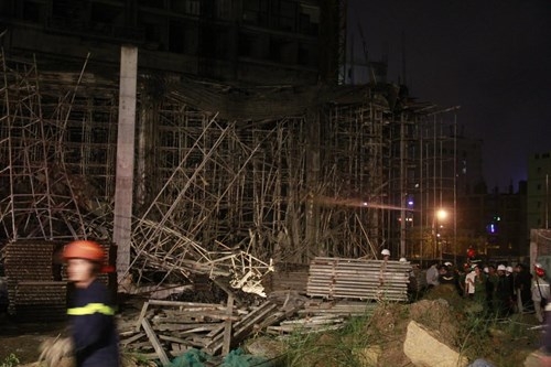 Vụ việc đã khiến nhiều công nhân bị vùi lấp trong hồ vừa và khối giàn giáo.