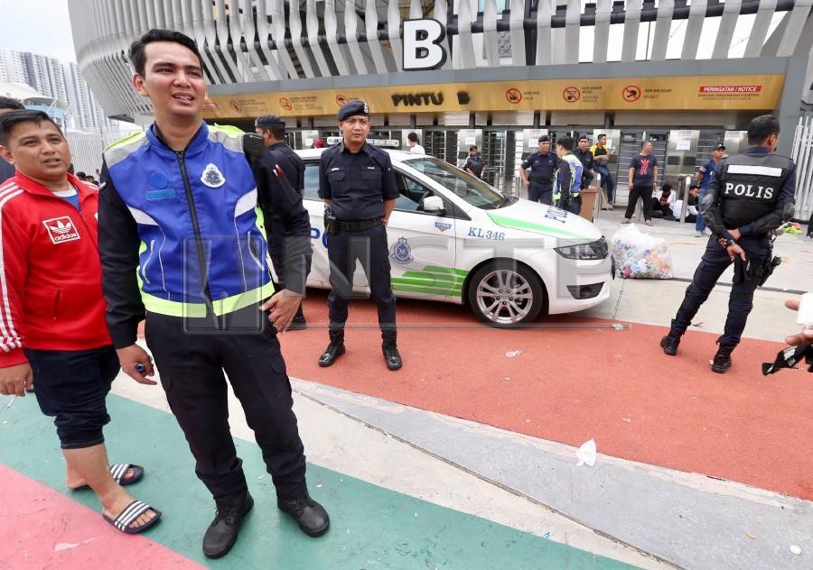 Do quá nhiều CĐV tới SVĐ Bukit Jalil để mua vé nên lực lượng an ninh cũng được huy động. Ảnh New Strait Times