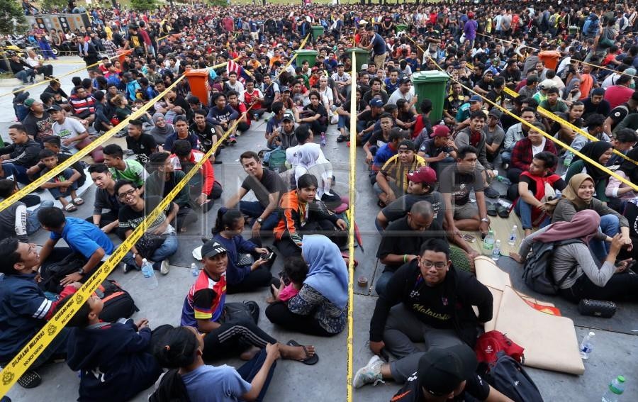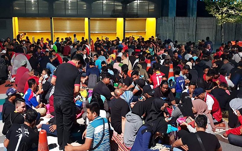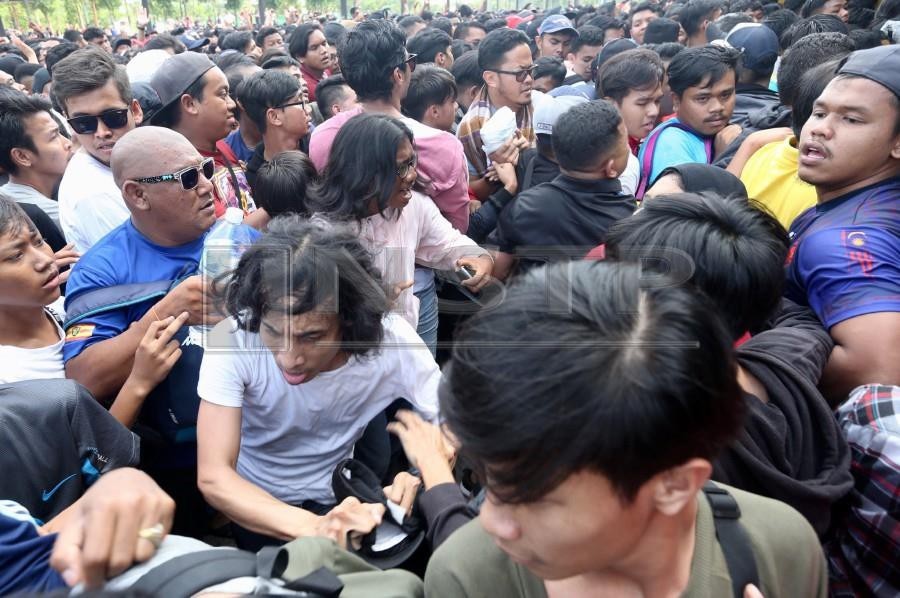 Khi quầy bán vé mở cửa, hàng nghìn người chen lấn, xô đẩy để mua vé tạo ra khung cảnh hết sức hỗn loạn. 40.000 vé được bán hết chỉ trong vòng 30 phút. Ảnh New Strait Times