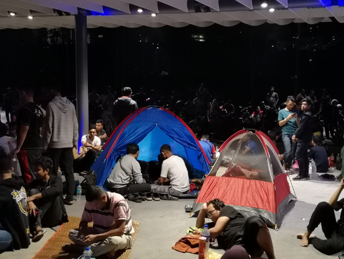 Một số người còn mang hẳn lều, chiếu tới SVĐ để chờ mua vé cho trận chung kết lượt đi AFF Cup. Ảnh Twitter