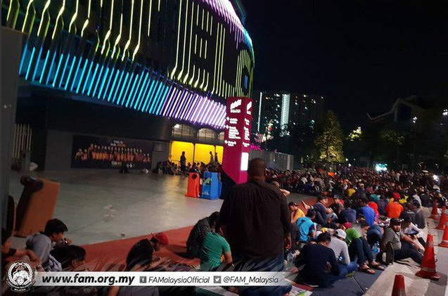 Liên đoàn bóng đá Malaysia (FAM) cho hay, những CĐV Malaysia đã tới SVĐ xếp hàng mua vé từ lúc 8h tối 8/12 và tính tới 1h sáng, đã có khoảng 6.000 người xếp hàng ở cổng A và cổng E của SVĐ Bukit Jalil. Ảnh Twitter