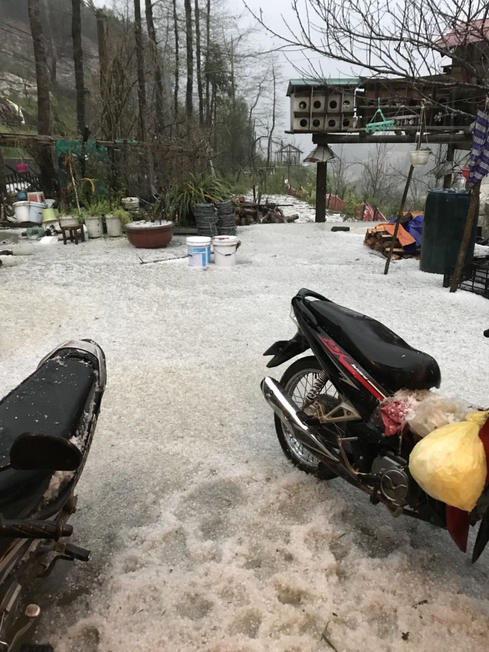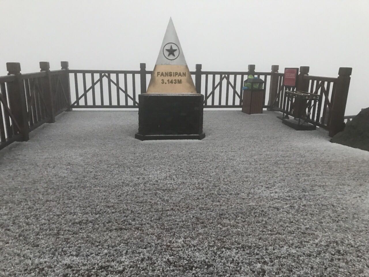 Vào lúc 17h30 chiều 17/2, tại khu vực đỉnh Fansipan, tỉnh Lào Cai bất ngờ xuất hiện mưa băng. Theo đó, nhiệt độ hạ xuống chỉ còn từ 5-7 độ kèm theo cơn mưa băng kéo dài 30 phút đã tạo nên lớp băng dày phủ khắp khung cảnh nên thơ của Fansipan ngày đầu xuân mới.