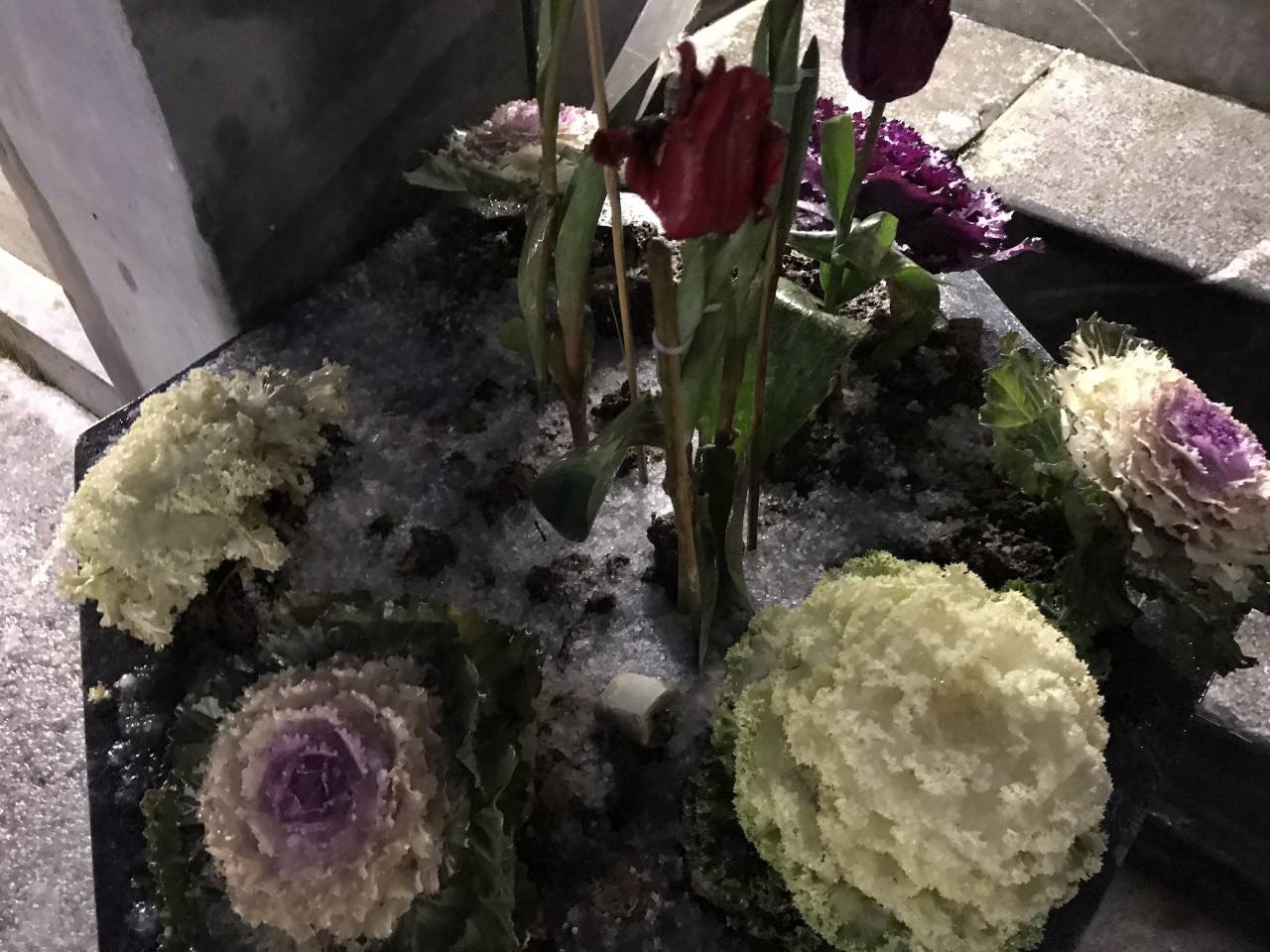 Đến tối cùng ngày mưa băng đã ngừng rơi, để lại một màn băng trắng phủ mềm mại lên các nóc nhà, những nhành hoa và lối đi.