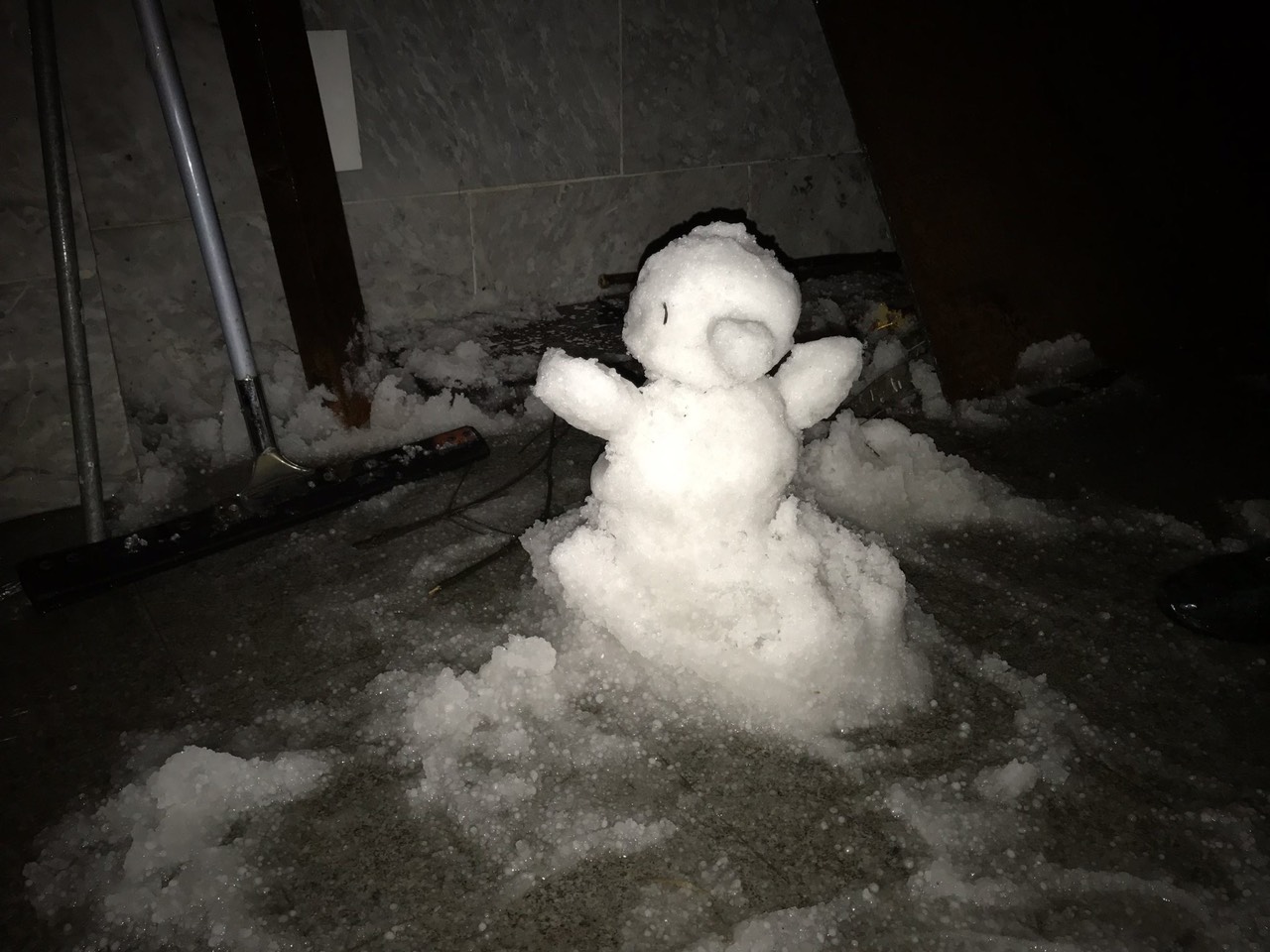 Người tuyết được ai đó đắp lại.