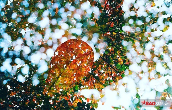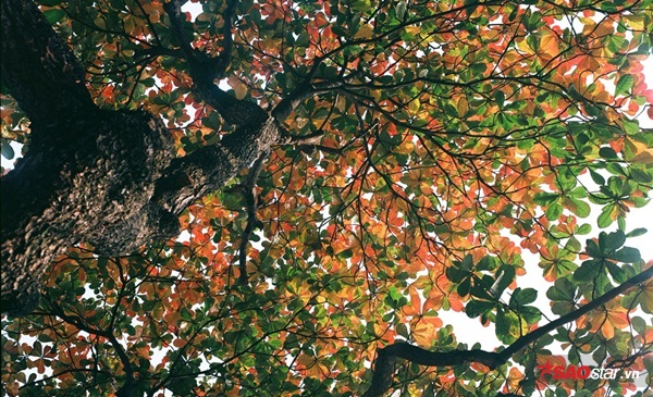 Bức tranh lá bàng được “vẽ” nên bởi vô vàn những tầng lá, lớp lá xếp chồng, đan xen lẫn nhau.