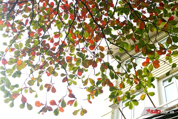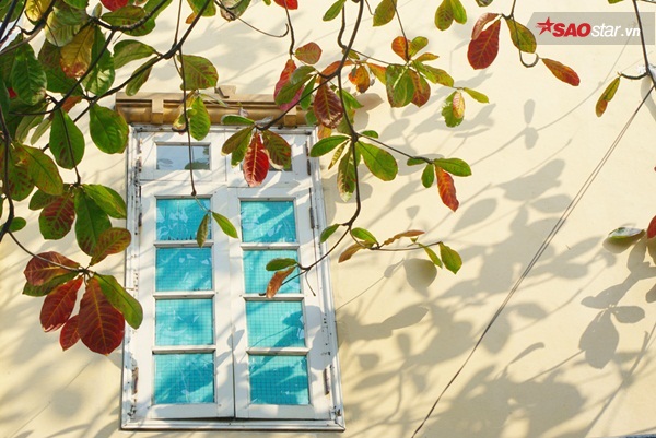 Lá bàng “chọn” góc rất khéo, cứ vô tư thay áo mới bên những ô cửa nhuốm màu thời gian hay những ban công cổ kính.