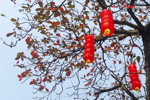 “Đọ” sắc đỏ rực rỡ cùng đèn lồng đỏ treo cao trên phố Lương Văn Can.