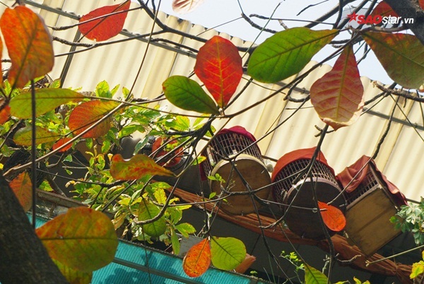 Trên phố Hàng Bông, hình ảnh lá bàng gắn liền với những chiếc lồng chim treo trên gác mái của người dân sống trong phố cũ.