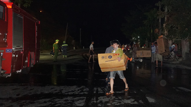 Người dân ở xã Sơn Thủy tất tả dọn đồ đạc ra khỏi nhà trong đêm. (Ảnh: Thanh Niên).
