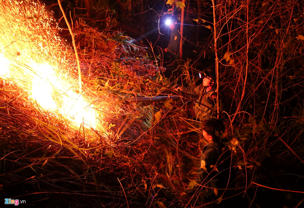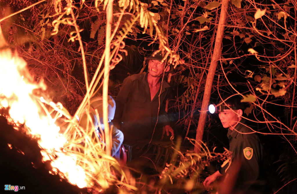 Do núi dốc, lớp thực bì dày, cộng với đêm tối khiến công tác khống chế đám cháy gặp nhiều khó khăn. (Ảnh: Zing. vn).