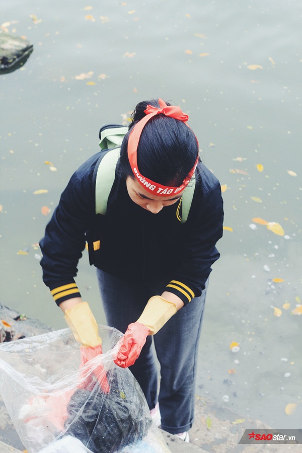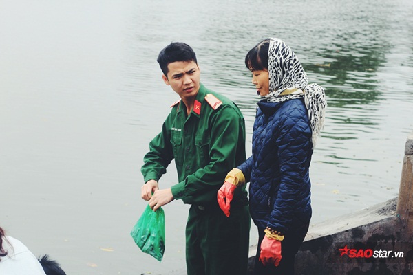 Một số bạn trẻ dọn rác ở Hồ Tây, thực hiện chiến dịch tình nguyện: “Đường Táo quân, thả cá, không thả túi nilon”.