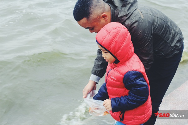 Cả gia đình cùng nhau thả cá, đây có lẽ là khoảnh khắc đẹp nhất trong ngày 23 tháng Chạp âm lịch.