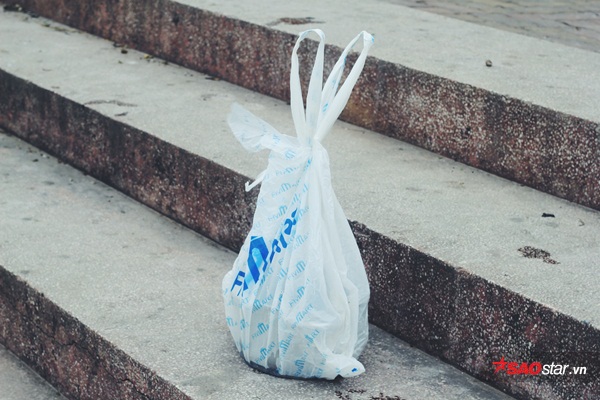 Xô cá vàng đựng trong những túi nilon. Theo ghi nhận của PV, năm nay, ý thức thả cá của người dân tăng lên đáng kể khi chỉ thả cá, không thả túi nilon. Nhưng cũng có người để túi bóng ngay bên cạnh, không mang đến thùng rác công cộng.