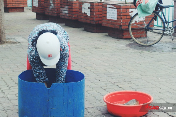 Xô thả cá được một số người lớn tuổi bọc khá cẩn thận.