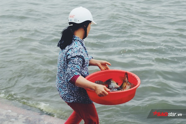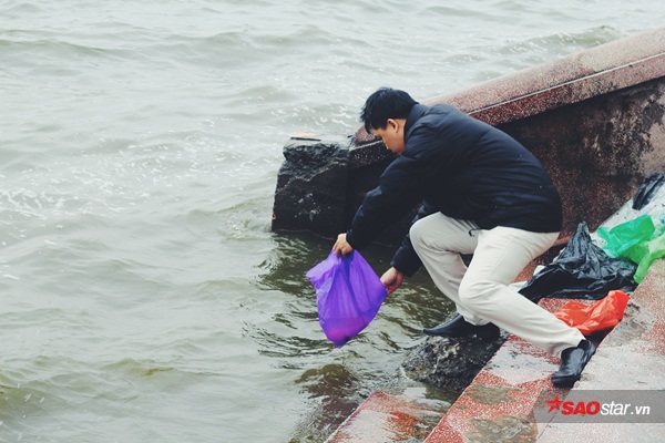 Nhiều người còn mang hẳn thùng cá chép với số lượng lớn (hàng chục kg), sau đó chia thành những chậu nhỏ để thả xuống Hồ Tây.