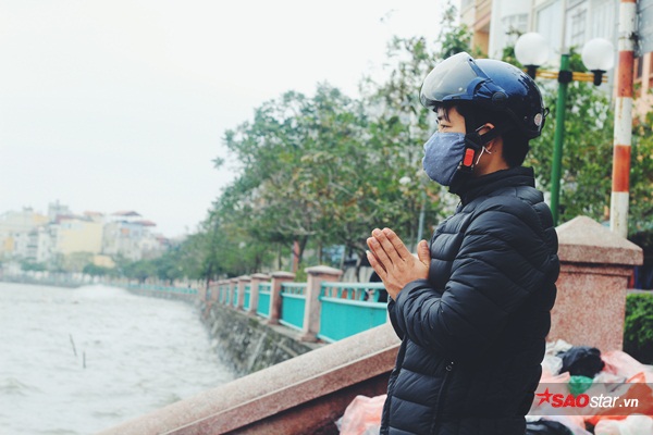 Sau khi thả cá chép, nhiều người còn cầu khấn.