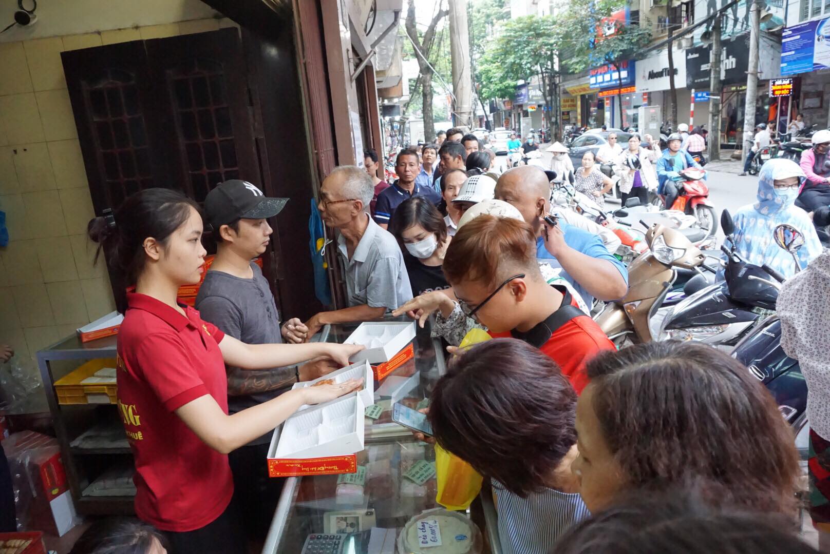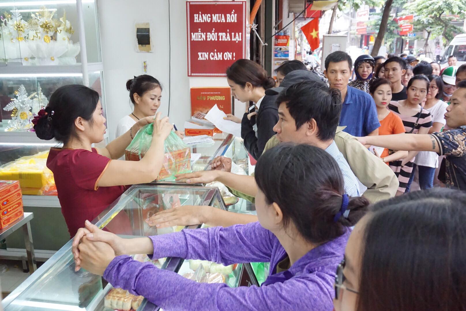 Cảnh người dân xếp hàng dài chờ mua bánh trung thu Bảo Phương.