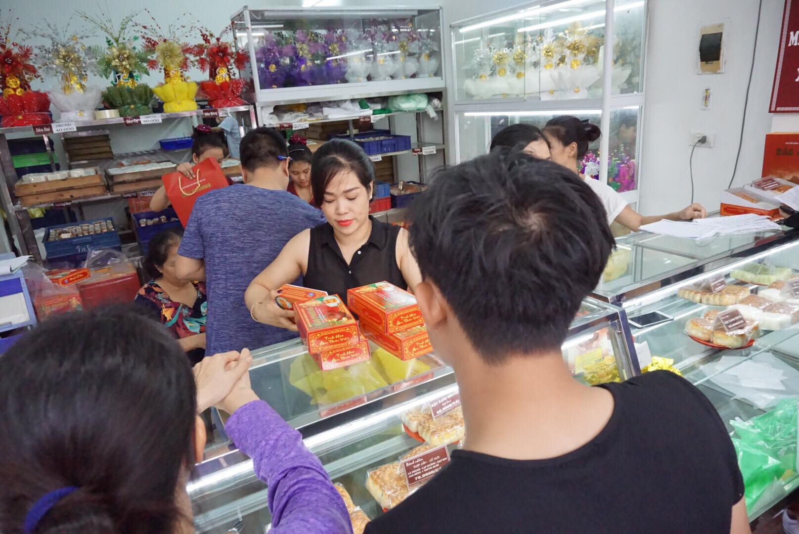 Tại tiệm bánh trung thu Bảo Phương cơ sở 2 cũng đông ngịt người đến xếp hàng mua.