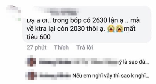 Tuy nhiên, khi về đến nhà, thay vì lời cảm ơn mà chàng trai xứng đáng được nhận, cô gái trẻ lại vào bình luận ở bài đăng cho biết mình bị thiếu tiền. Cụ thể, tổng số tiền trong ví là 2.630.000 nhưng bị mất 600.000 đồng.