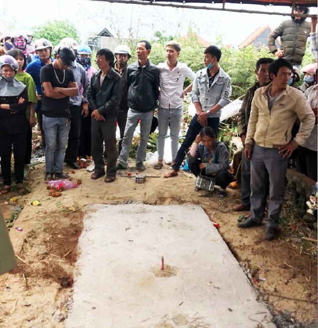 Cũng trong chiều ngày 12/5, rất đông người thân của anh Vương - người bị Đỗ Văn Minh sát hại đã có mặt tại nghĩa trang xã Tân Hà để tiến hành khai quật hài cốt. Nhiều người dân địa phương tự nguyện giúp đỡ gia đình nạn nhân trong quá trình khai quật.