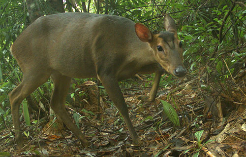Con mang cái được ghi nhận nhờ máy bẫy ảnh. Ảnh: Leibniz-IZW, WWF-Việt Nam, USAID & Chi cục Kiểm lâm Quảng Nam.