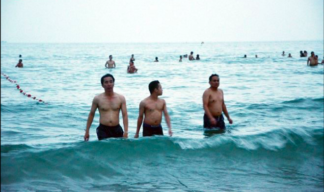 Vào 5h sáng ngày 30/04 tại bãi biển số 3 - Phạm Văn Đồng, cư dân Đà Nẵng bắt gặp ông Nguyễn Điểu - lãnh đạo Sở Tài nguyên môi trường đi tắm biển.