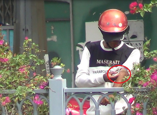 Khoảng 13h ngày 18/7, một người đàn ông mặc áo công nhân dựng xe bên đường Trường Sa, bất ngờ băng qua bãi cỏ đến bụi cây gần bờ kè. Ông ta lắc kim tiêm có chứa dung dịch màu trắng rồi tiêm vào bắp tay. Sau khi phê, người này quăng kim tiêm thẳng xuống dòng kênh rồi bỏ đi.