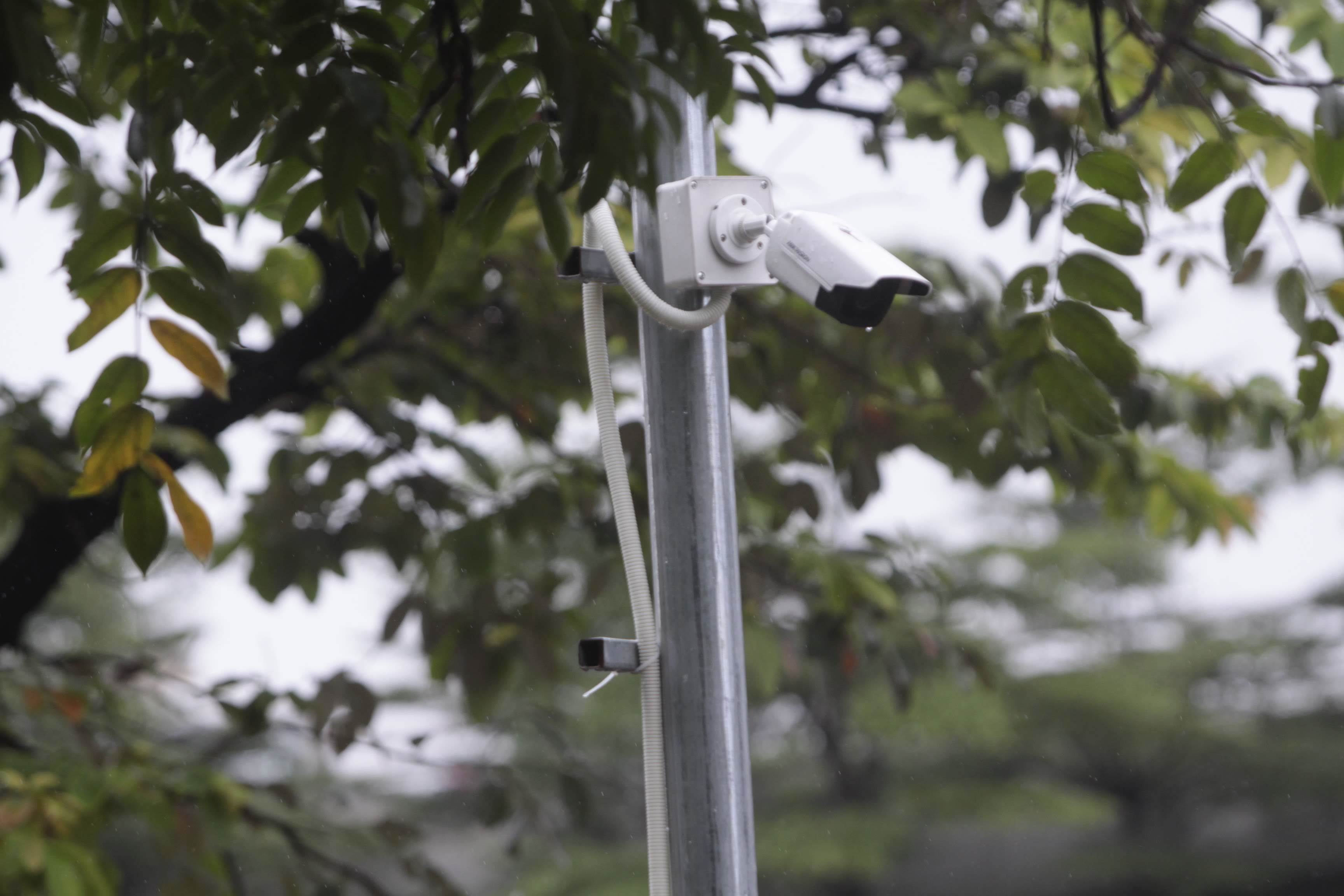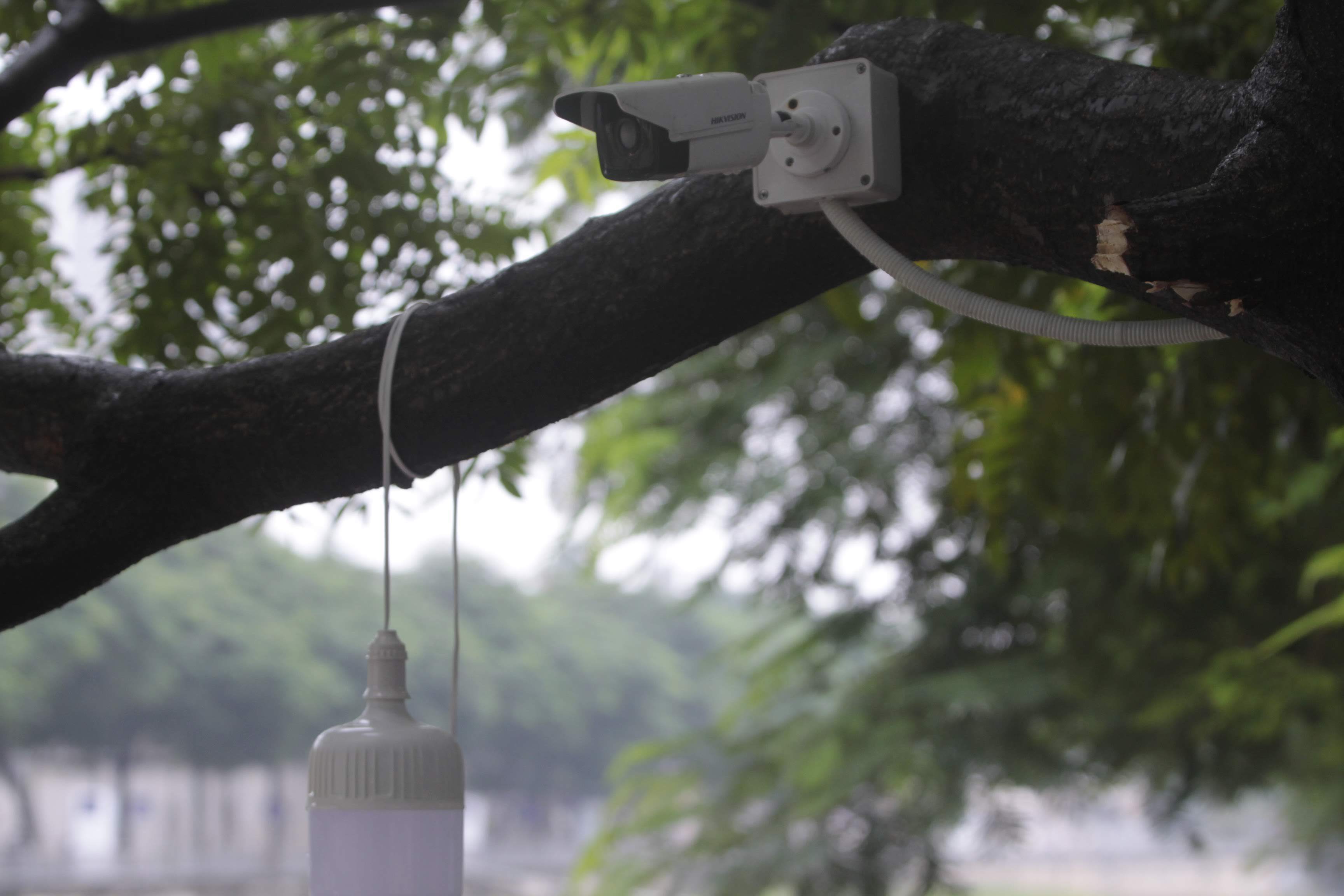 Camera được lắp đặt để bảo vệ đàn cá Koi Nhật Bản và cá chép đỏ Việt Nam. Ảnh: Vietnamnet