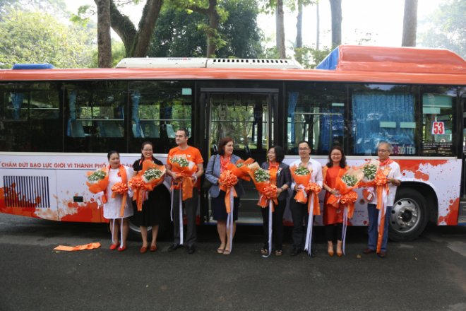 Theo đó, sẽ có 26 xe buýt tuyến số 53 (Trung tâm TP - Đại học Quốc gia) và một số nhà chờ sẽ được dán thông điệp với nội dung “Vì thành phố an toàn với phụ nữ và trẻ em”.