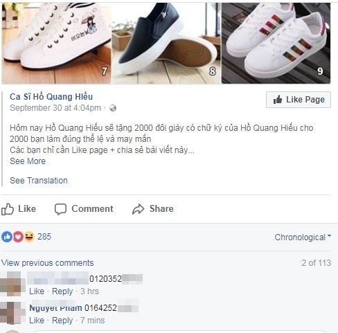 Dù chiêu trò không mới và đã được cảnh báo nhiều lần, thế nhưng, các đối tượng phát triển page theo kiểu “ăn xổi”, bằng cách nào đó vẫn đánh lừa được rất nhiều người. Điển hình là mới đây, một fanpage mạo danh Cường Dollar đã thu về gần 250.000 lượt like cùng lượng tương tác khổng lồ chỉ nhờ chiêu trò “câu like” nhảm nhí kể trên. Theo đó, fanpage này chỉ mới được thành lập hồi tháng 9 và hầu hết các bài post chỉ liên quan đến thông tin tặng thẻ cào.