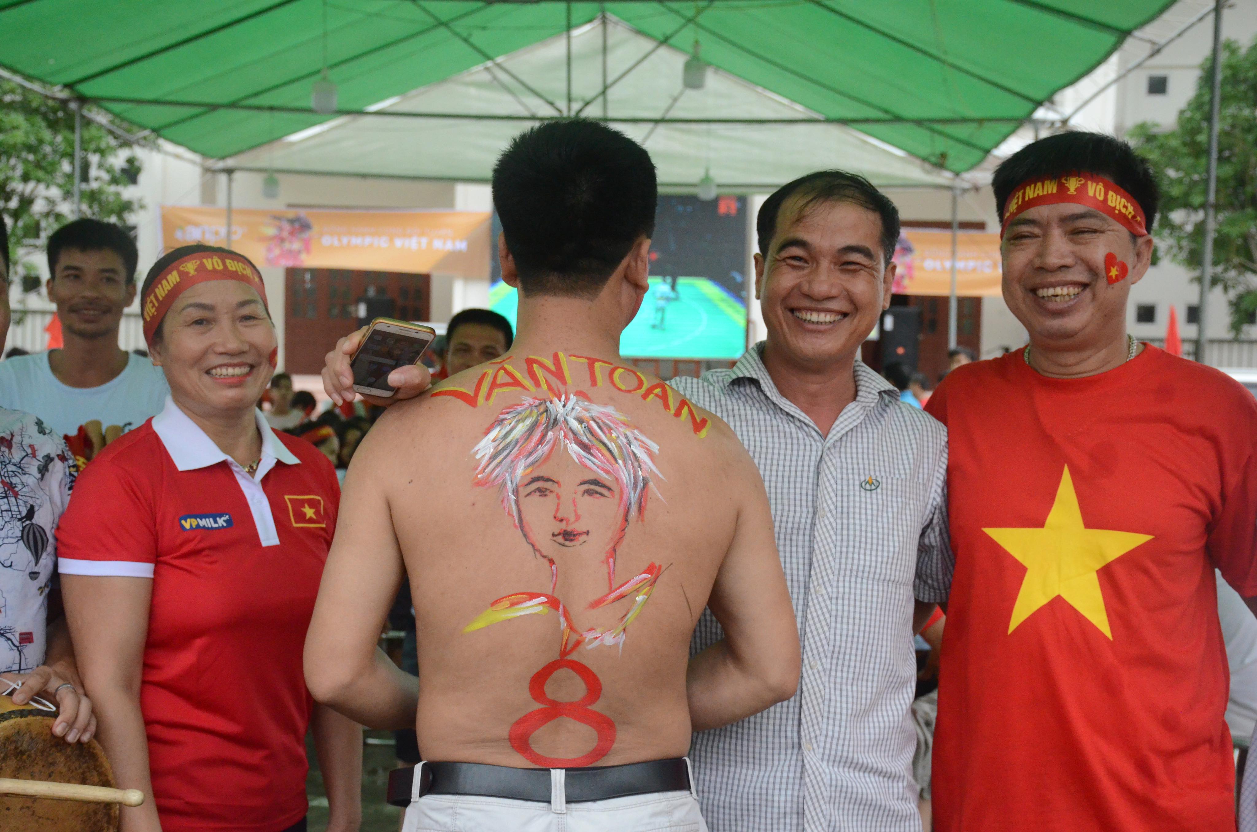 Một fan hâm mộ đã vẽ hình cầu thủ Văn Toàn lên lưng.