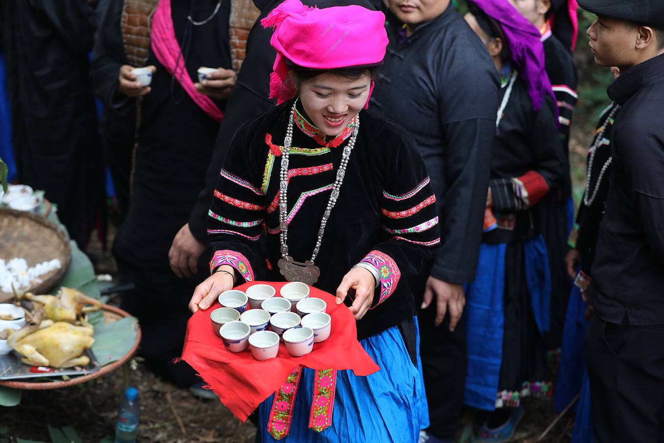 Phần rượu trên mâm lễ được thiếu nữ Pu Péo mời khách - kết thúc phần lễ.