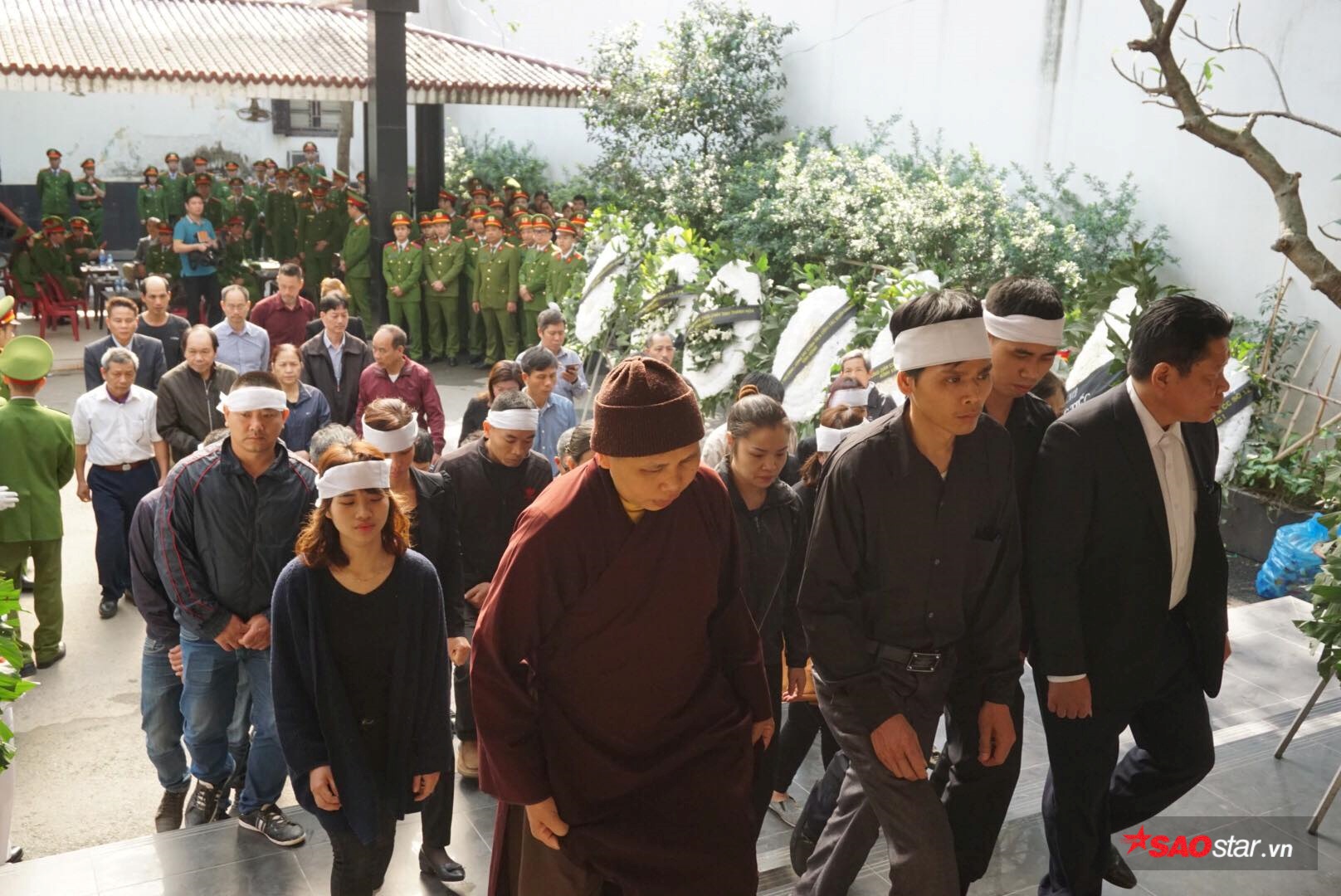 Người thân, đồng đội đi quanh linh cữu thượng sĩ Khánh.
